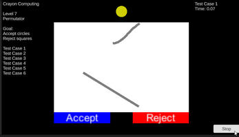 Draw a shape on the whiteboard so that all inputs fall into the left side (accept).